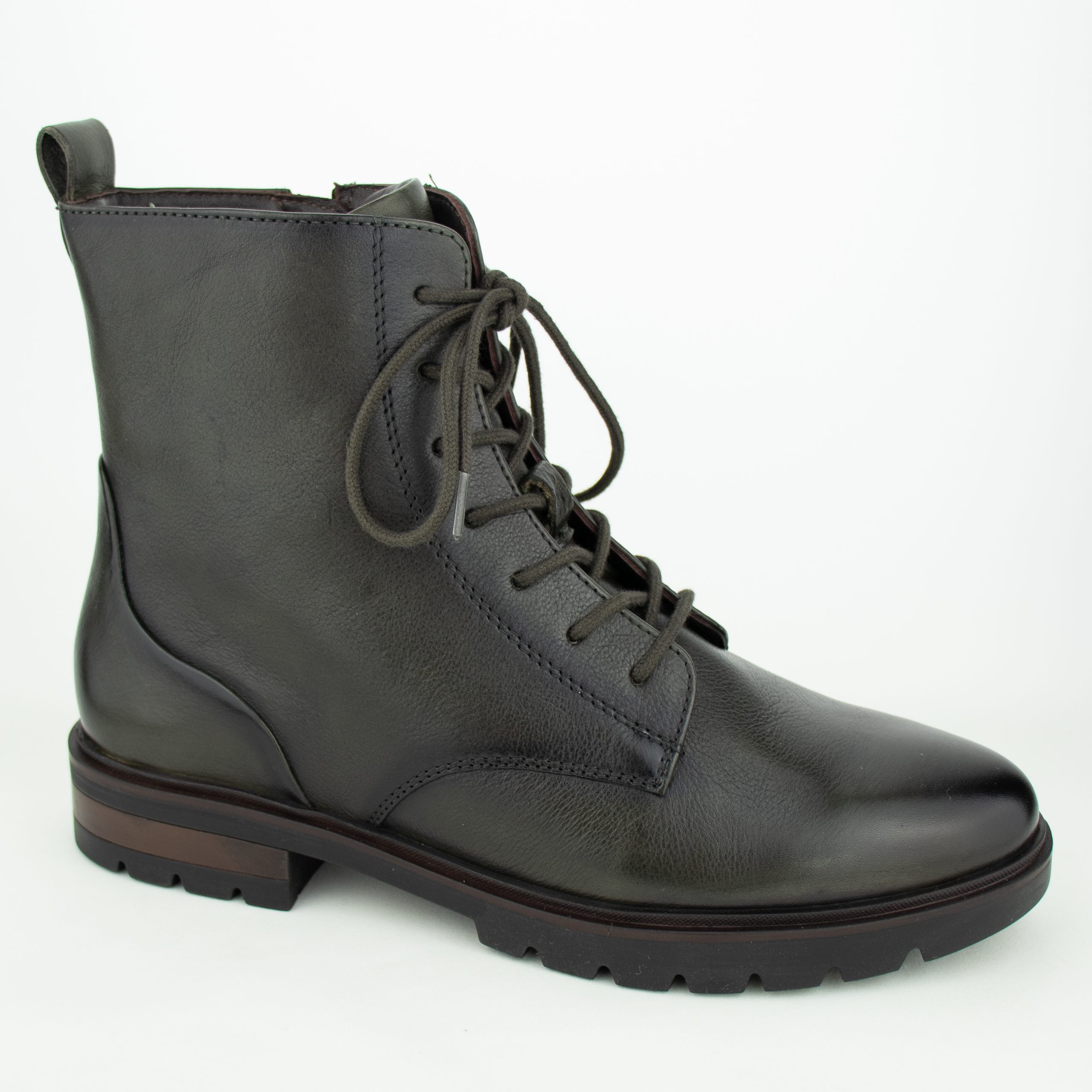 Deze boot is uitgevoerd in donkergroen leder. Uitneembaar high soft voetbed/geschikt voor eigen zooltjes. Veter- en ritssluiting voor het gemakkelijk aan- en uittrekken.