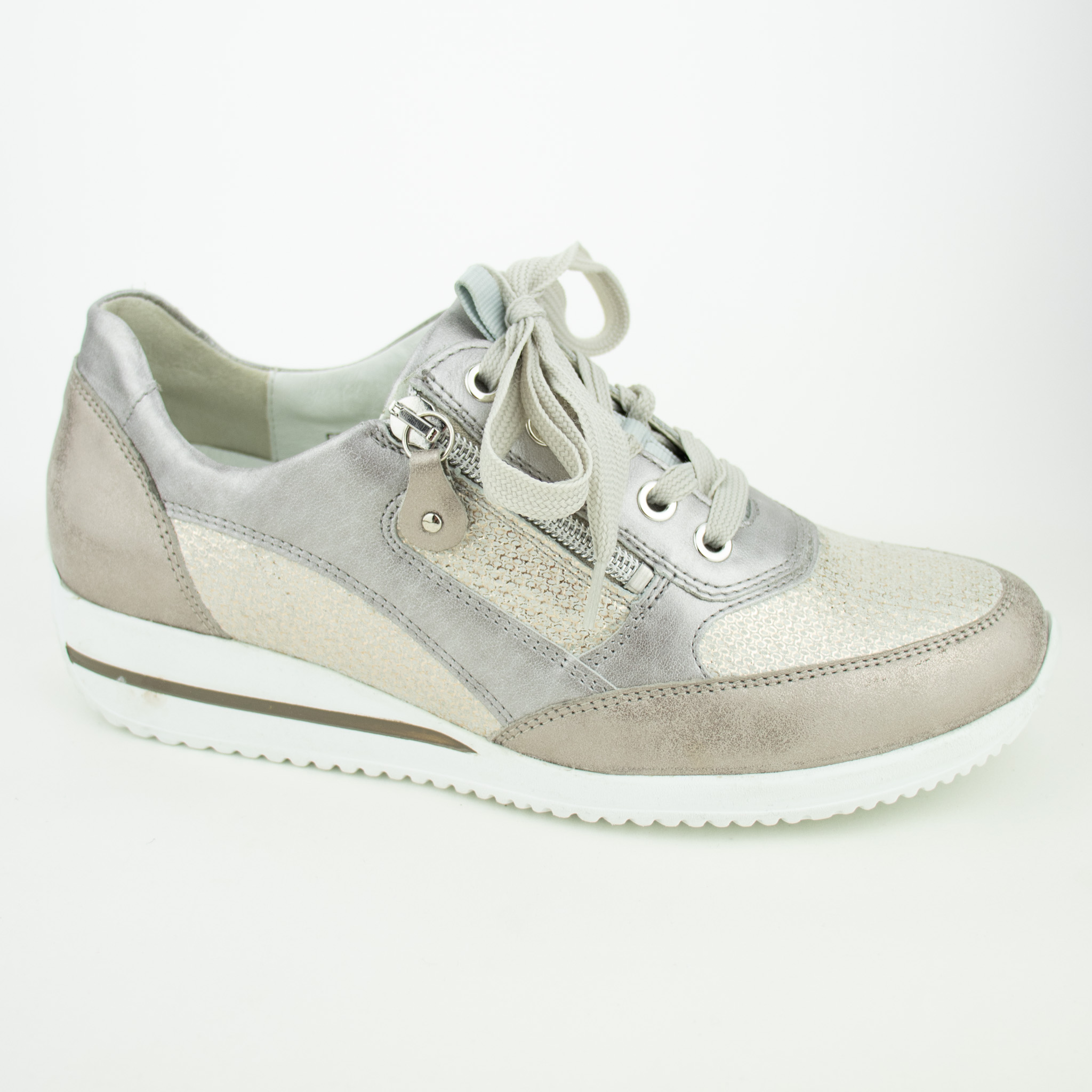 Deze lichtgewicht veterschoen is uitgevoerd in brons/zilver metallic leder combinatie op een lichte hakverhoging. Veter- en ritssluiting voor het gemakkelijk aan- en uittrekken. Uitneembaar voetbed/geschikt voor eigen zooltjes. Wijdte maat H.