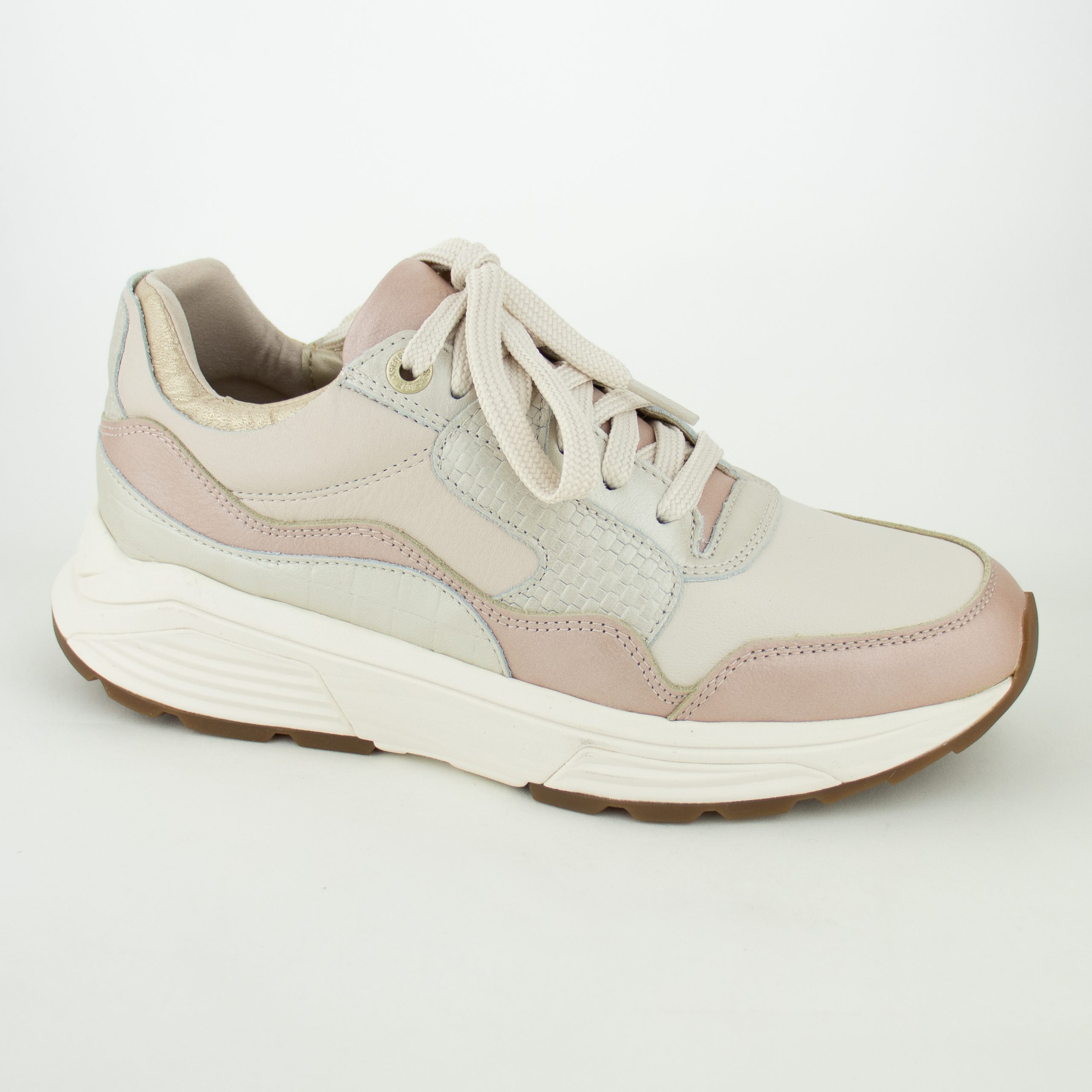 Deze Golden Gate voor dames is uitgevoerd in zalm/beige leder combinatie en heeft een vetersluiting.